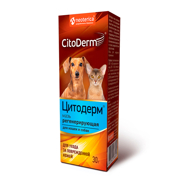 Чтобы справиться с травмами и оказать быструю помощь питомцу, используйте регенерирующую мазь CitoDerm! ✔ Заживляет царапины и трещины.