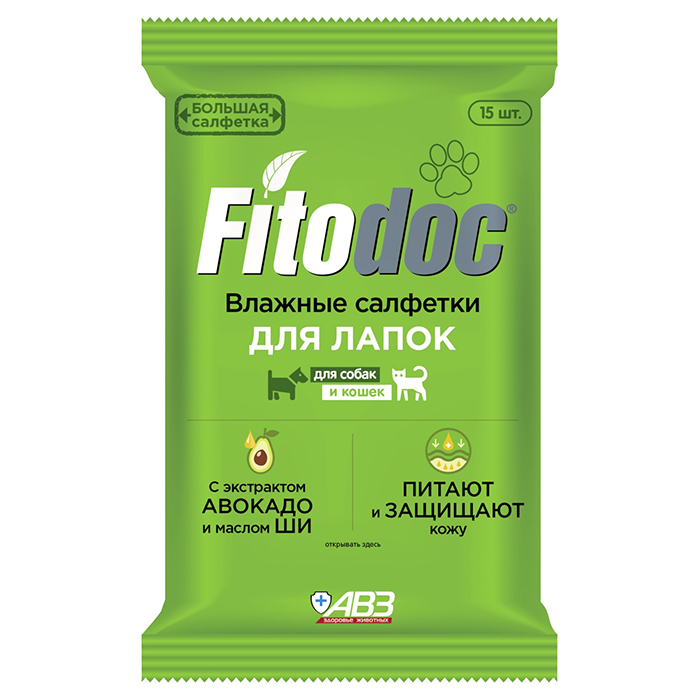 ФИТОДОК влажные салфетки для ухода за лапами собак и кошек, упаковка 15шт, АВЗ Fitodoc