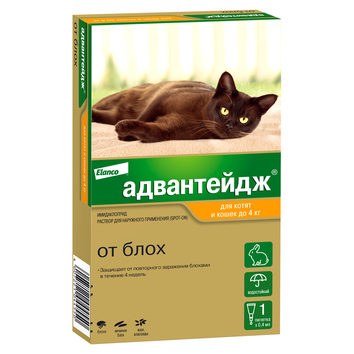 АДВАНТЕЙДЖ капли на холку от блох для кошек до 4кг, 1 пипетка, ELANCO Advantage