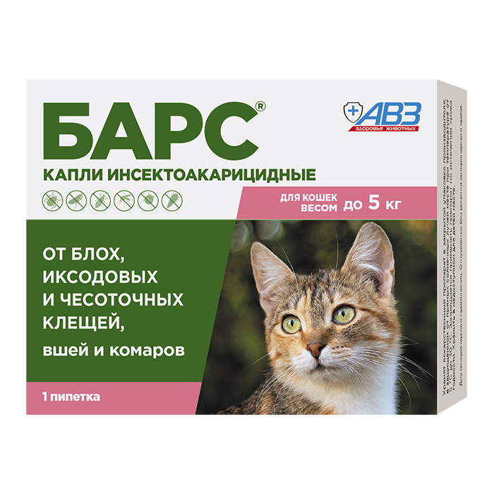 Барс капли от блох, клещей и комаров для кошек до 5кг, 1 пипетка 0,5мл, АВЗ