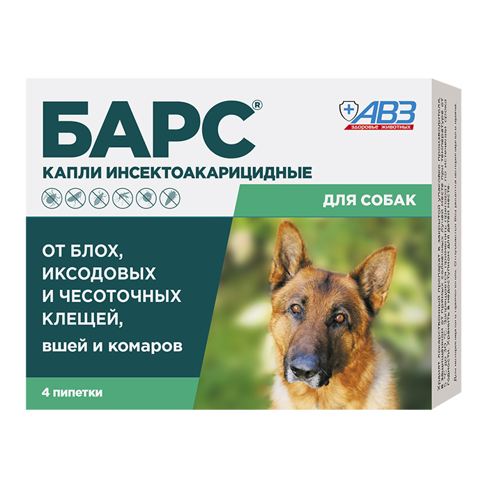 Барс капли от блох, клещей и комаров для собак, 4 пипетки по 0,67мл, АВЗ