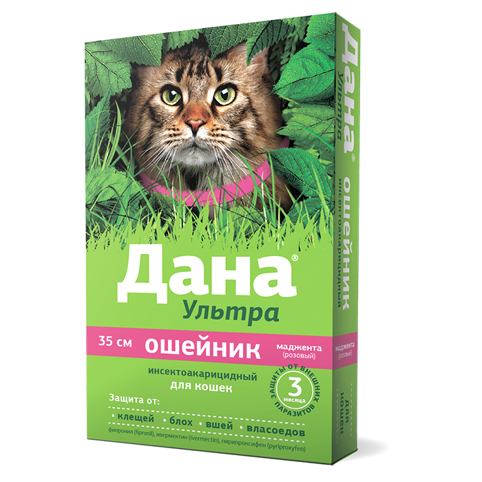 ДАНА УЛЬТРА ошейник от блох и клещей для кошек, 35см, розовый, APICENNA