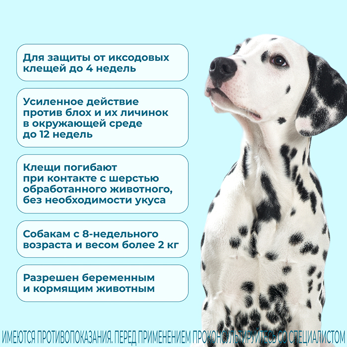 • Разрешается применять щенкам с 8-недельного возраста и весом от 2 кг, а также беременным и кормящим животным. Удобство применения: