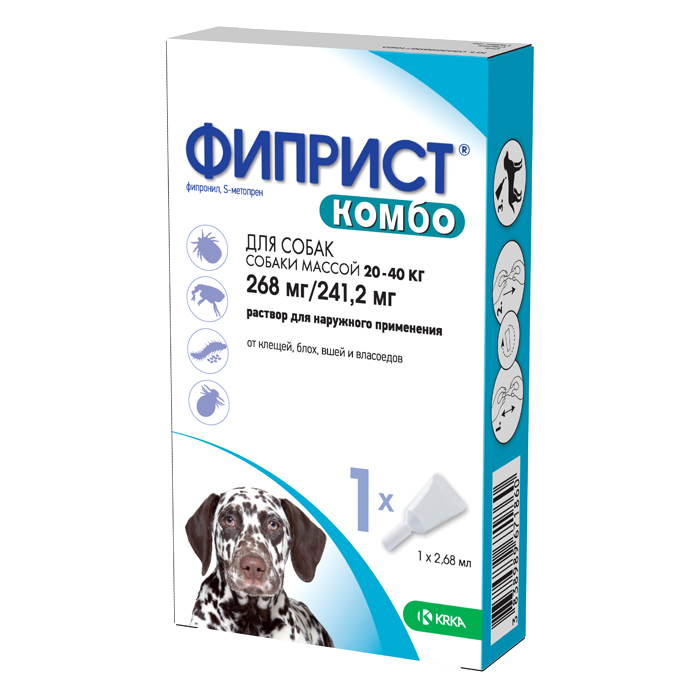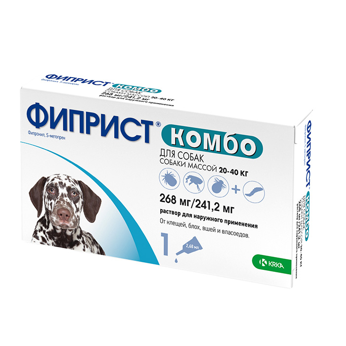ФИПРИСТ КОМБО препарат от клещей, блох, вшей, власоедов для собак весом 20-40кг, 1 пипетка, КRКА Fiprist Combo