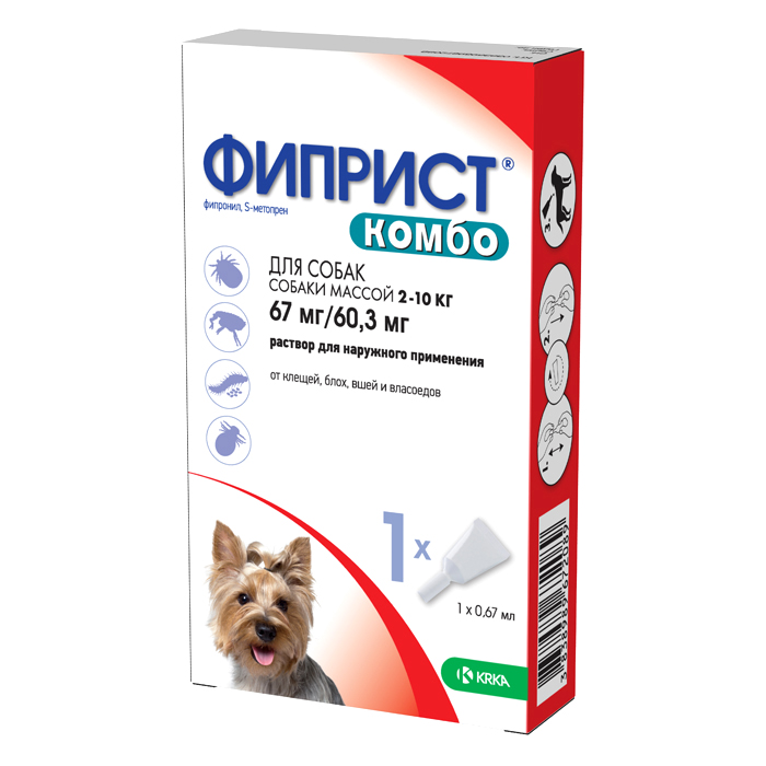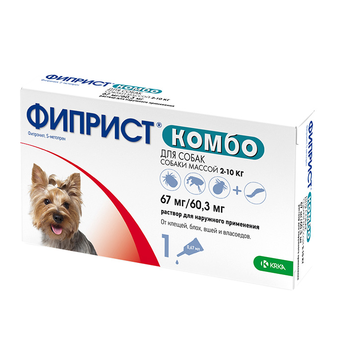 ФИПРИСТ КОМБО препарат от клещей, блох, вшей, власоедов для собак весом 2-10кг, 1 пипетка, КRКА Fiprist Combo