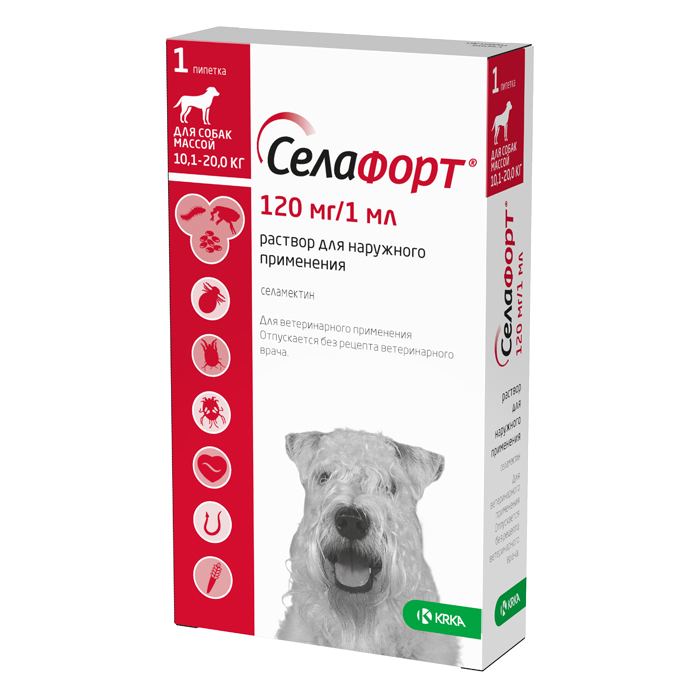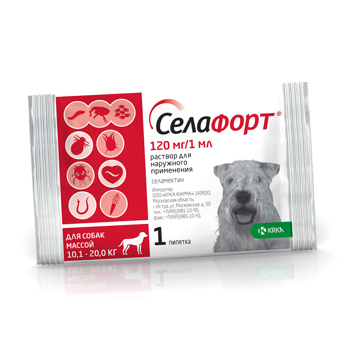 СЕЛАФОРТ 120мг препарат от внешних и внутренних паразитов для собак весом 10,1-20 кг, 1 пипетка, KRKA Selafort