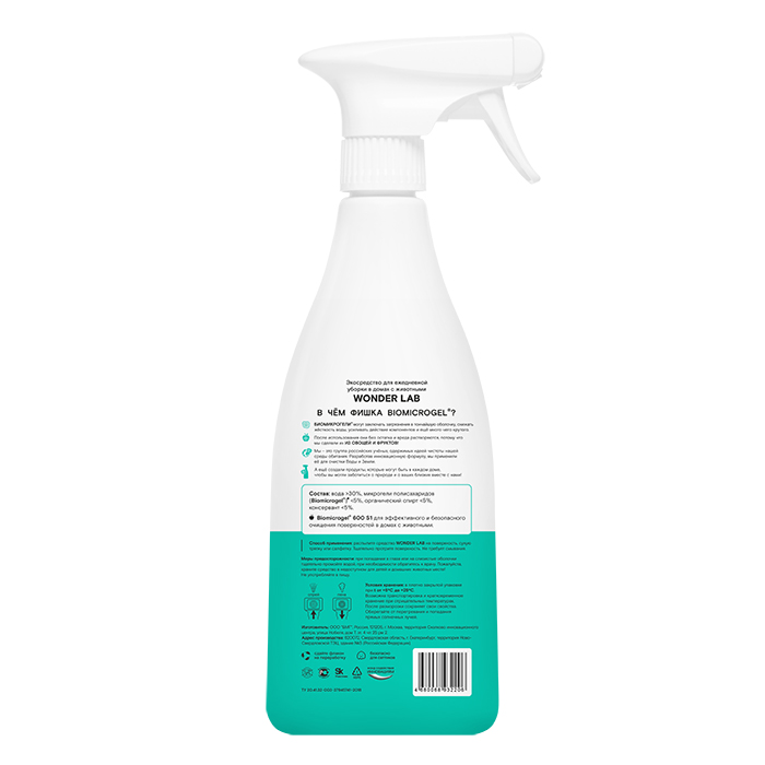 Экосредство для ежедневной уборки в домах с животными, спрей, 550мл, WONDER LAB