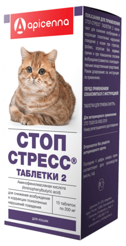СТОП-СТРЕСС успокоительное средство для кошек, 15 табл. APICENNA