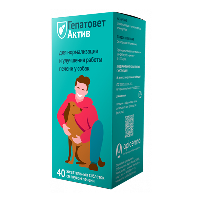 ГЕПАТОВЕТ АКТИВ жевательные таблетки для собак для нормализации и улучшения работы печени, 40таб, APICENNA