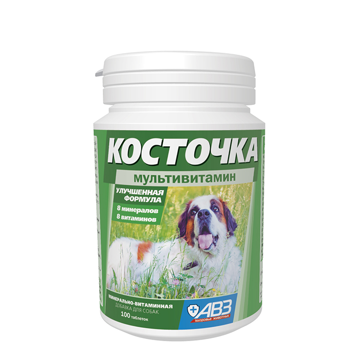 КОСТОЧКА МУЛЬТИВИТАМИН минерально-витаминная кормовая добавка для собак, упаковка 100 табл. АВЗ