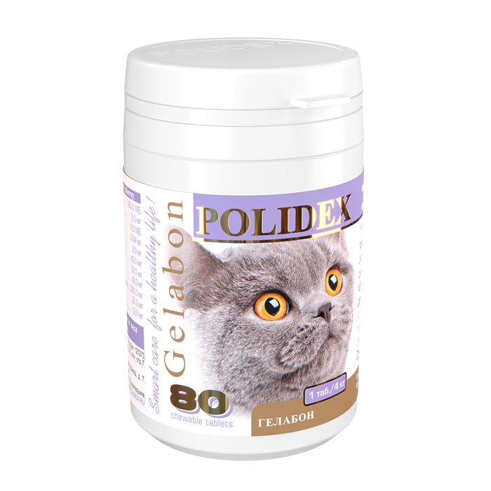Полидекс ГЕЛАБОН добавка для кошек для суставов, связок и сухожилий, с коллагеном и МСМ, 80 табл, 1 таблетка на 4кг, POLIDEX Gelabon