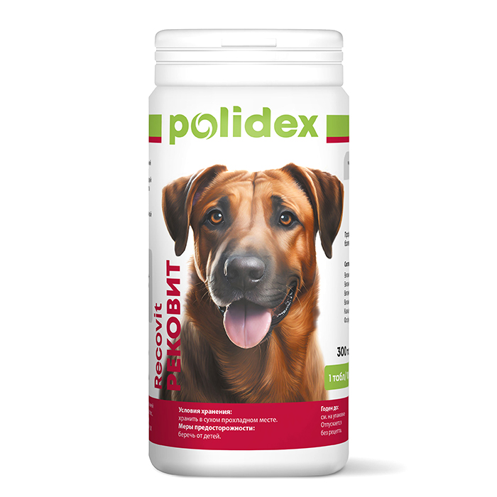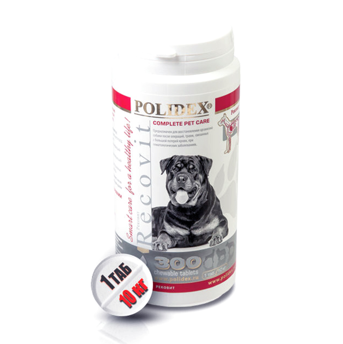 POLIDEX® Recovit 300т, 1 таблетка на 10кг веса. «Рековит» предназначен для восстановления организма собаки после операций, травм, связанных с большой потерей крови, при гематологических заболеваниях. Основными компонентами препарат являются: