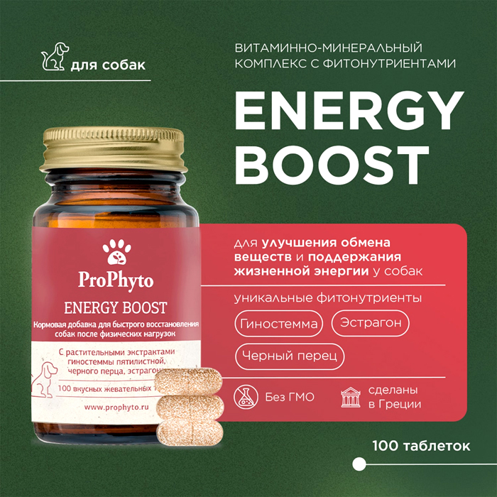 ПроФито ЭНЕРДЖИ БУСТ кормовая добавка для собак для восстановления после нагрузок, 100 таблеток, ProPhyto Energy Boost